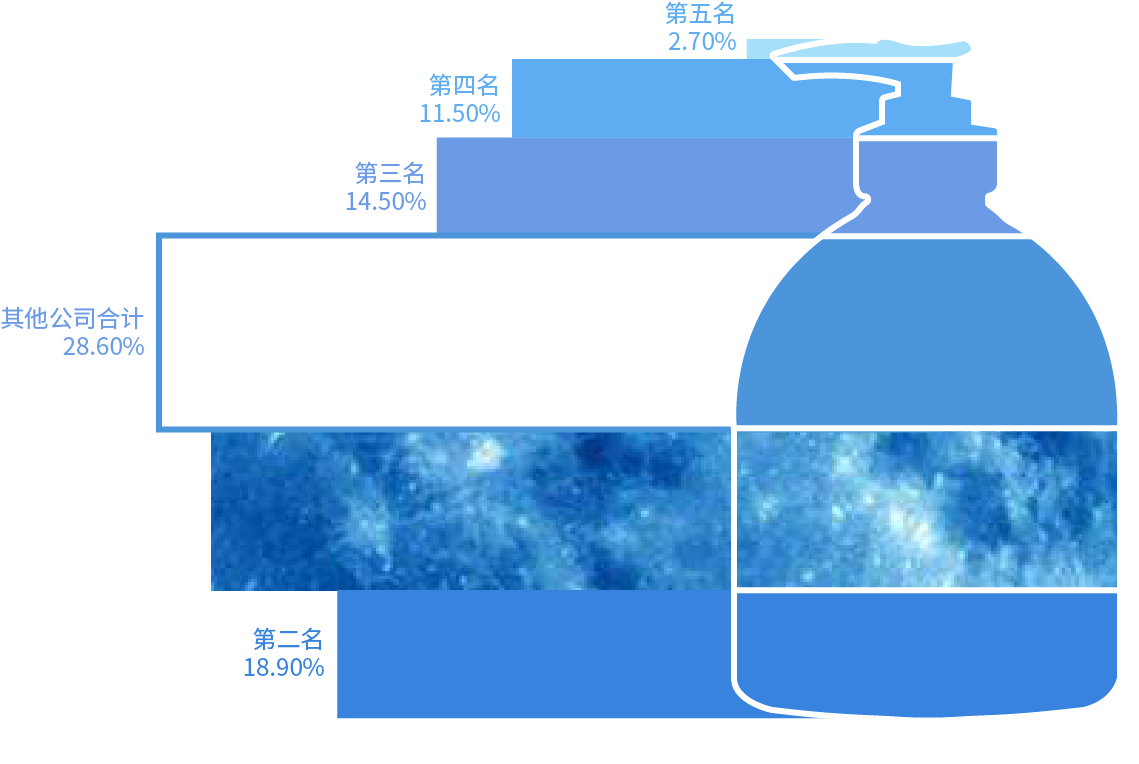 2019年,衣物清洁护理产品收入占蓝月亮所有产品收入的87.6%,其中洗衣液产品在中国的市场份额连续11年位居第一。